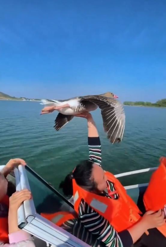 よく見ると楽だから羽ばたくのをやめたというより、お腹を押さえられることで体勢が安定しなくて羽ばたくと逆に風の抵抗を受けてバランスを崩しそうになるから羽ばたくのをやめた風に見えるな