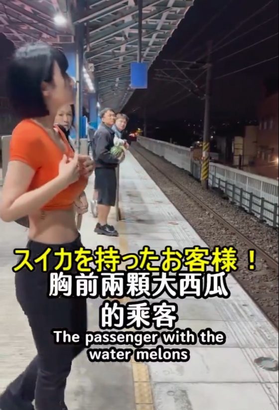 中国のお姉さん、自分のおっぱいがスイカみたいだと勘違いしてしまう
