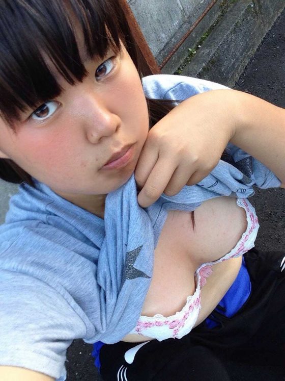 【画像】シャツを捲り上げて胸を見せつける女の子