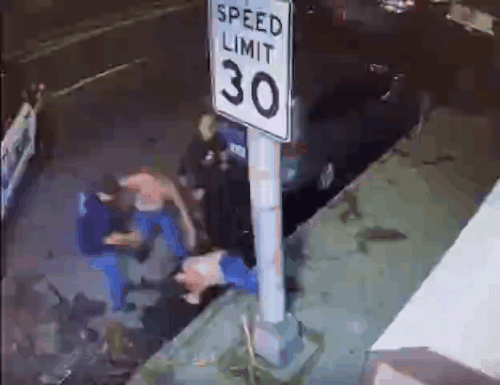 女性警官、男達の喧嘩になす術がなく立ち尽くす