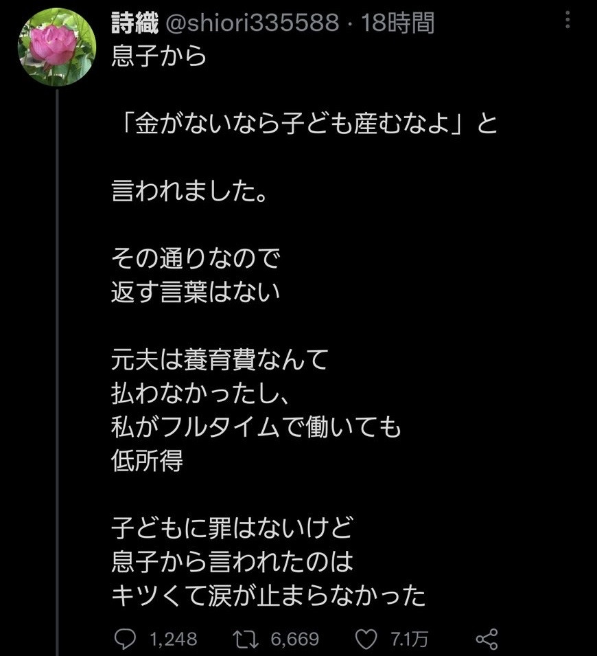 まあ産むのは良いけど離婚したのは自己責任やな、計画性なさすぎ