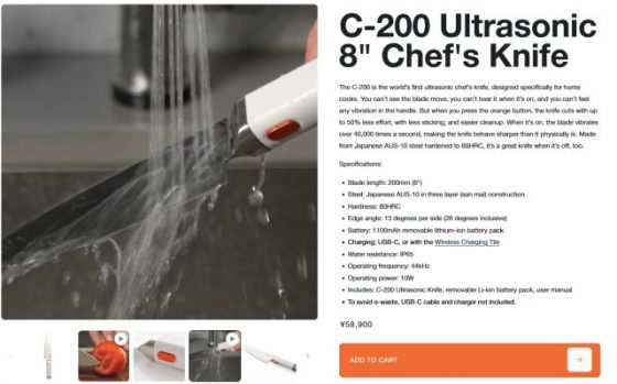 Seattle Ultrasonicsの「C-200」は、包丁をガジェット化して超音波で細かく振動する機能を搭載。世界初の刃渡り20cm三徳包丁が爆誕しました。
