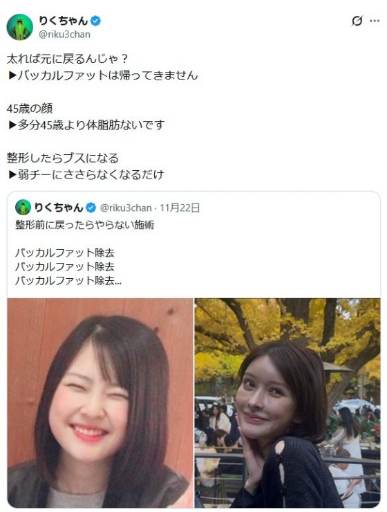 整形は一時的に見た目良くなるけど年老いた時の反動がデカイと周知すべきやろ😨