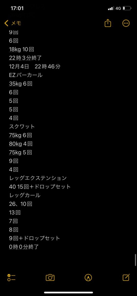 ラックやベンチ台を占領した上で、スマホでこんなメモ取ってたら周囲のトレーニーは殺気が湧くんやで