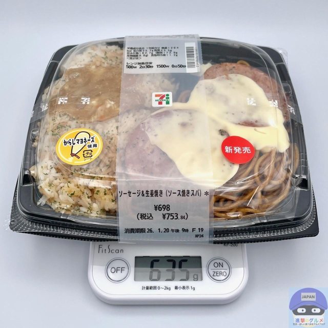 2026年1月20日、セブン-イレブンが新商品「ソーセージ&生姜焼き ソース焼きスパ(753円)」を発売しました。にんにく醤油だれがかかったご飯に、ソーセージステーキと生姜焼き、ソース味の焼きスパゲッティを組み合わせた、満足感のある大盛り弁当です。