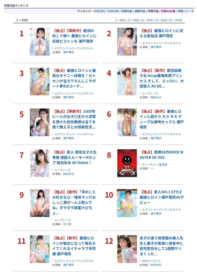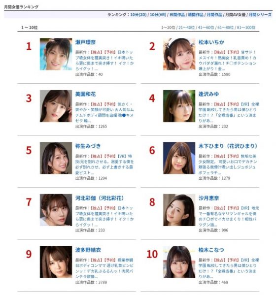 水嶋あずみ、麻美ゆま、月野りさ、成瀬心美、仁科百華、橘なお、