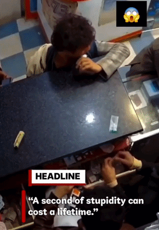 携帯ショップの防犯カメラが、口の中でリチウムバッテリーが爆発する瞬間を捉えた。拡散されている動画の冒頭には、カウンターのそばに立つ少年がバッテリーを口に入れる様子が映っている。少年は、どういう理由か分からないが、それを横から齧る。数秒後、驚くべき爆発が起きた。