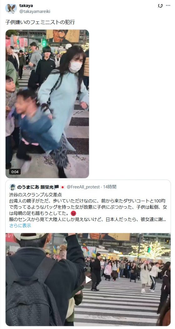 【動画】 日本人女性が炎上!! 台湾から来た観光客に体当たり・・・