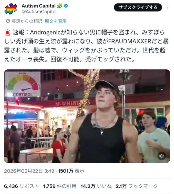 【ハゲ】イケメンYoutuberさん、ライブ配信中に帽子とヅラを剥ぎ取られ無事死亡。。。