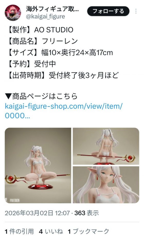 【画像】フリーレンのHなフィギュア、発売!!!