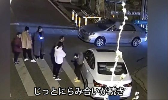 中国東部の江蘇省にある村の交差点で2台の車が鉢合わせた。それぞれの車の運転手たちは互いに譲らず、じっとにらみ合いが続き、ついには夜になってしまった。