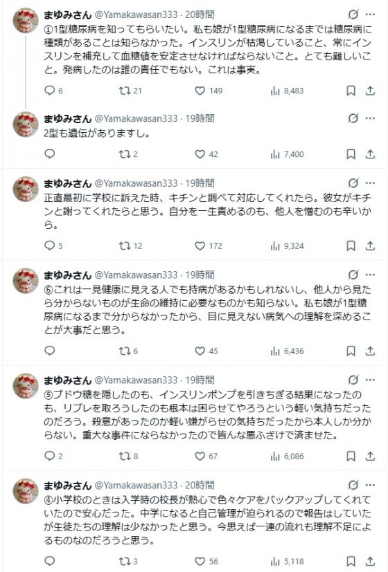 被害生徒は1型糖尿病という生涯管理が必要な持病を抱えており、常にインスリンポンプを体に装着して血糖値をコントロールしていた。低血糖発作が起これば即座にブドウ糖を摂取しなければ意識を失う危険性があり、学校生活では血糖測定器が命綱のような存在だった。