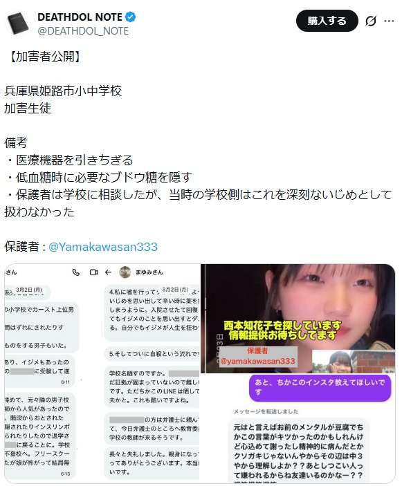 姫路の小中学校で1型糖尿病生徒のインスリンを隠すイジメが発覚・・・その後、生徒は死亡へ