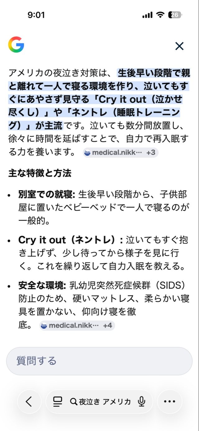 アメリカ人は夜泣きしてようが放置して寝るらしいな