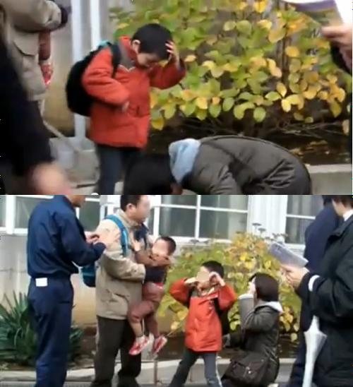 子どもを抱き抱え母親に謝罪強要